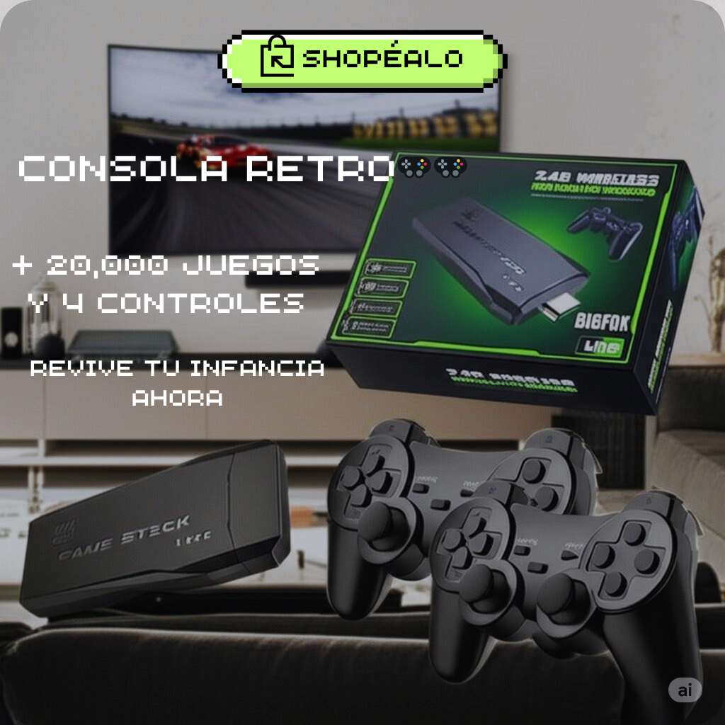 Revive la era dorada de los videojuegos con esta increíble consola retro que conecta directamente a tu televisor por HDMI. Con un catálogo asombroso de más de 20,000 juegos clásicos preinstalados, esta consola es la opción perfecta para nostálgicos, coleccionistas y nuevas generaciones que quieran descubrir los títulos que marcaron historia.